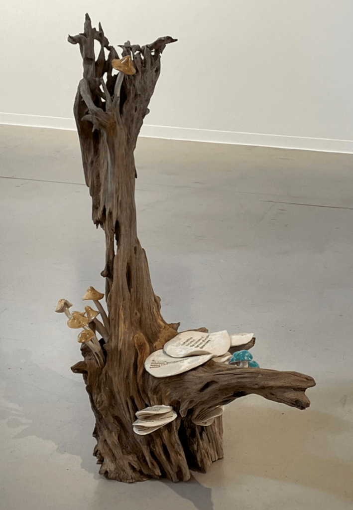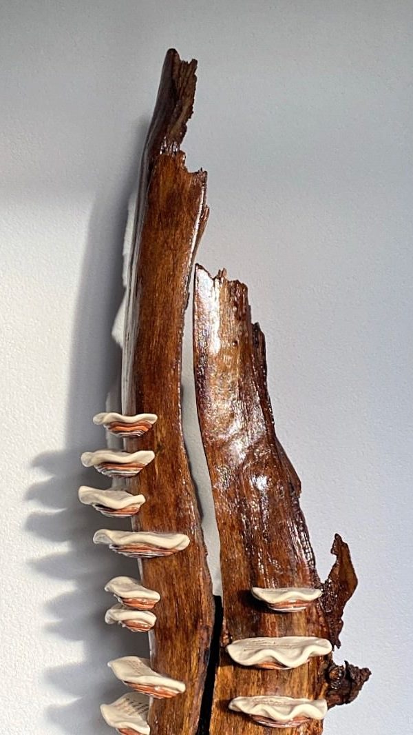 Mushrooms have long been used to support the health and wellness of the body, mind and spirit. Even now and already for millennia mushrooms have maintained a constant role in our culture and history. Influenced by the disciplines art, science and spirituality I create sculptural works that allow you to experience different interpretations on the concept of the mycelium-like connectivity in our diverged society.